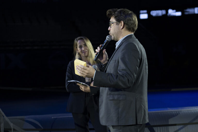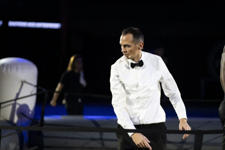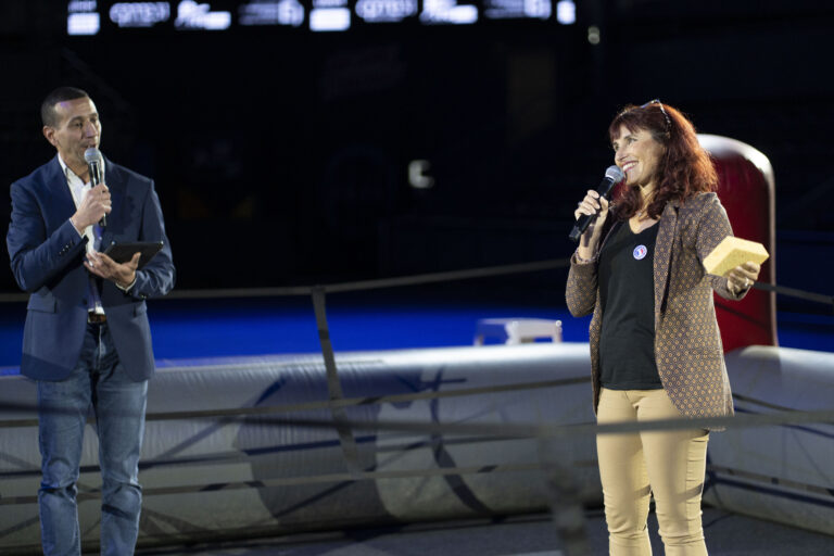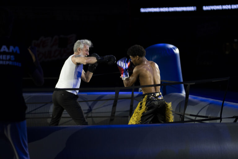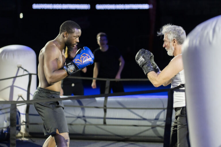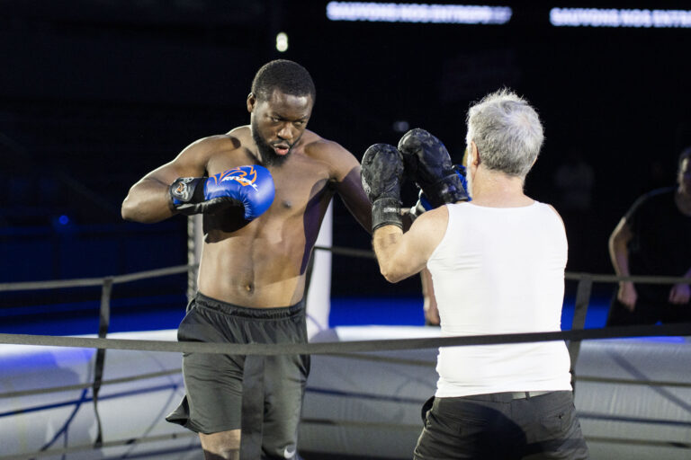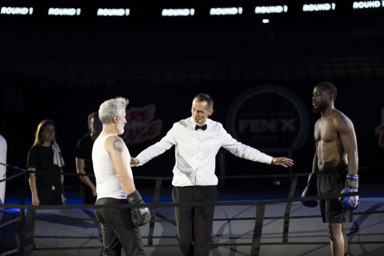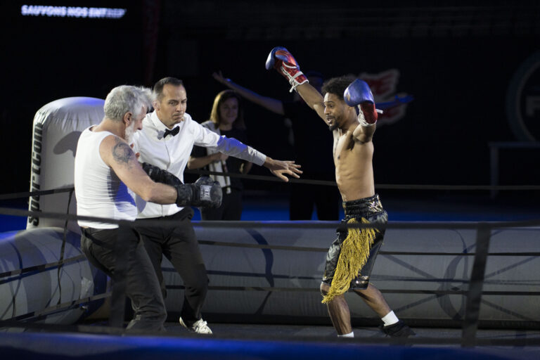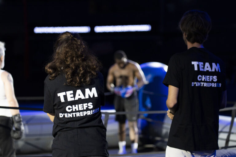 Pour incarner le combat du chef d’entreprise et les difficultés auxquelles il doit constamment faire face (hausse des cotisations sociales, suppression d’un crédit d’impôt essentiel, taxation du patrimoine et des dividendes, durcissement du cautionnement personnel, hausse de la TVA, etc…): nous avons choisi de mettre en place un véritable combat de boxe.