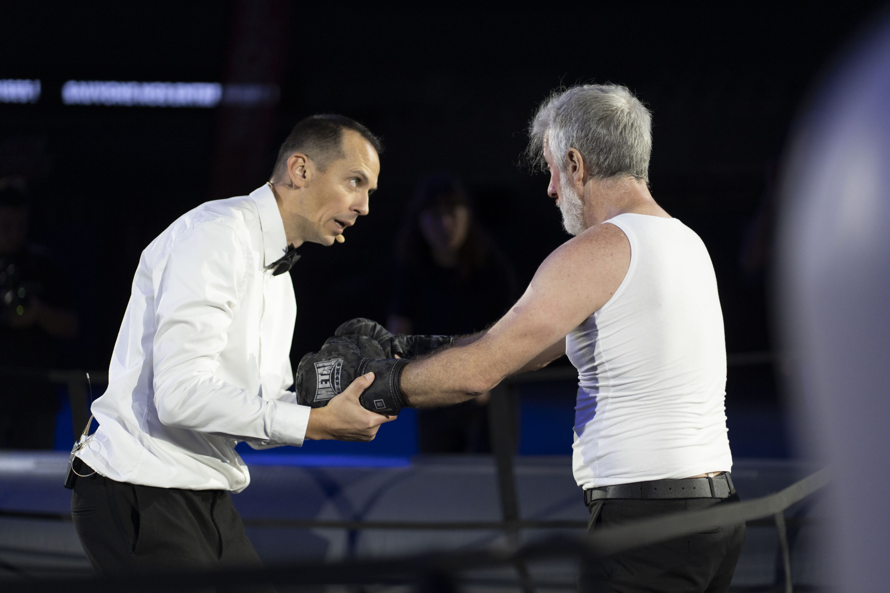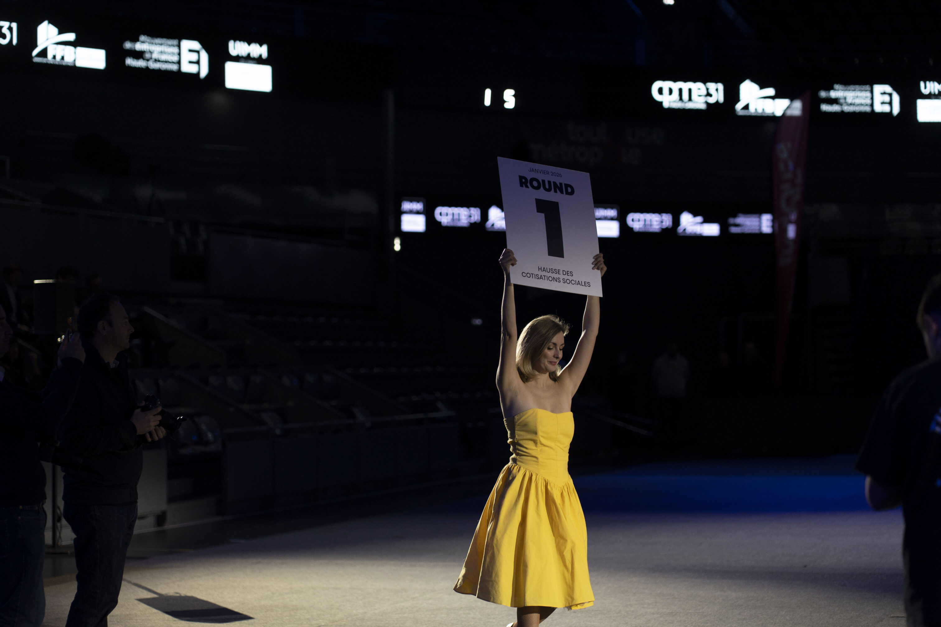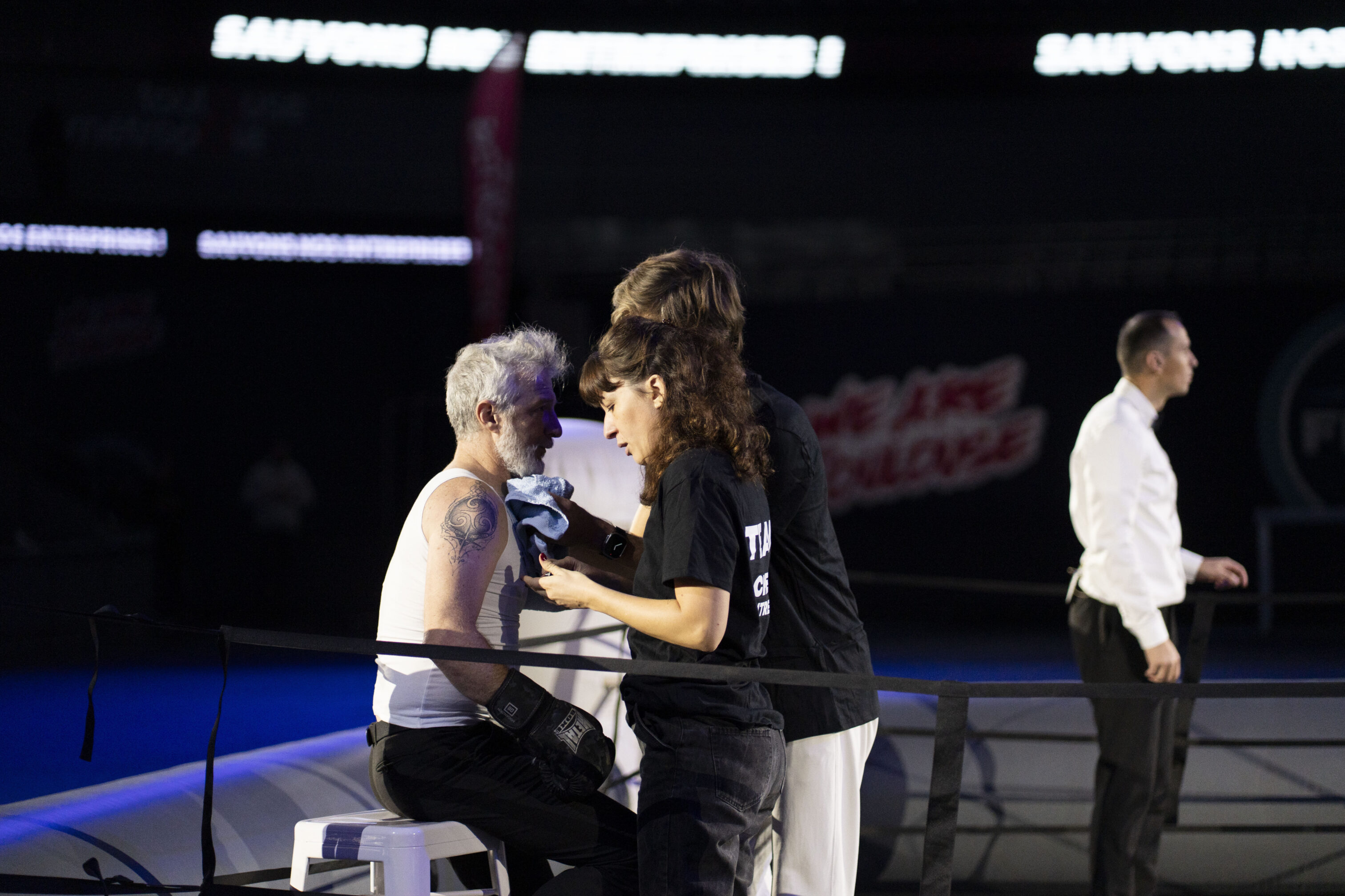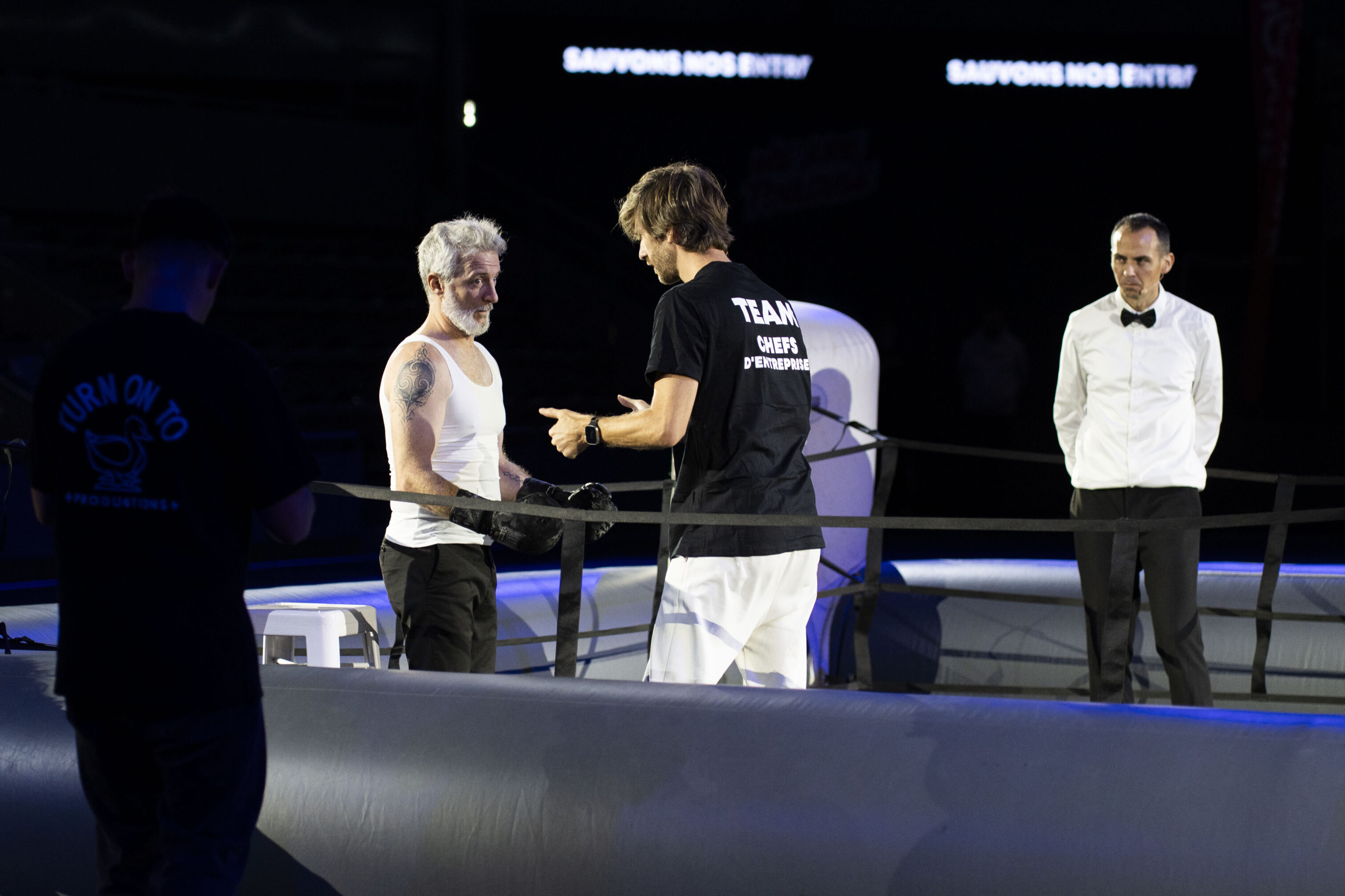 Pour incarner le combat du chef d’entreprise et les difficultés auxquelles il doit constamment faire face (hausse des cotisations sociales, suppression d’un crédit d’impôt essentiel, taxation du patrimoine et des dividendes, durcissement du cautionnement personnel, hausse de la TVA, etc…): nous avons choisi de mettre en place un véritable combat de boxe.