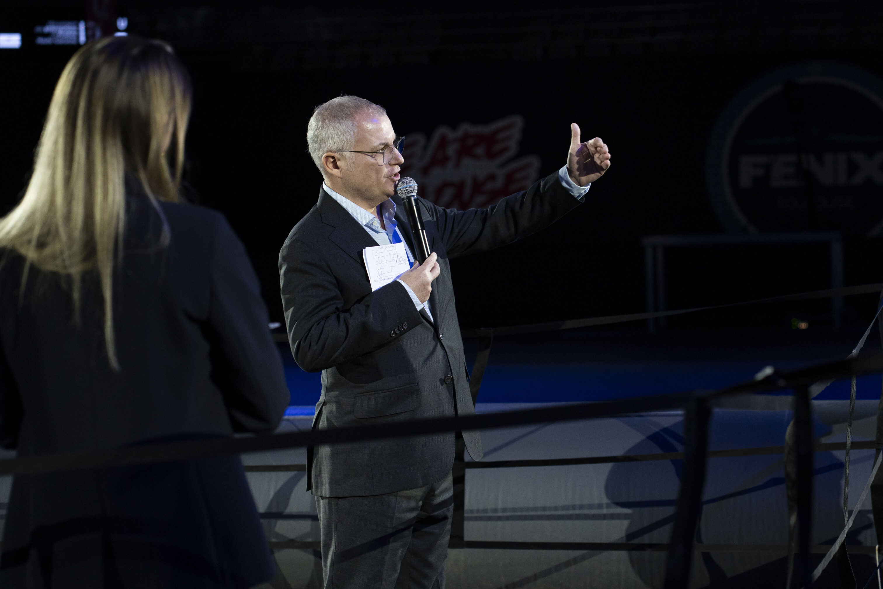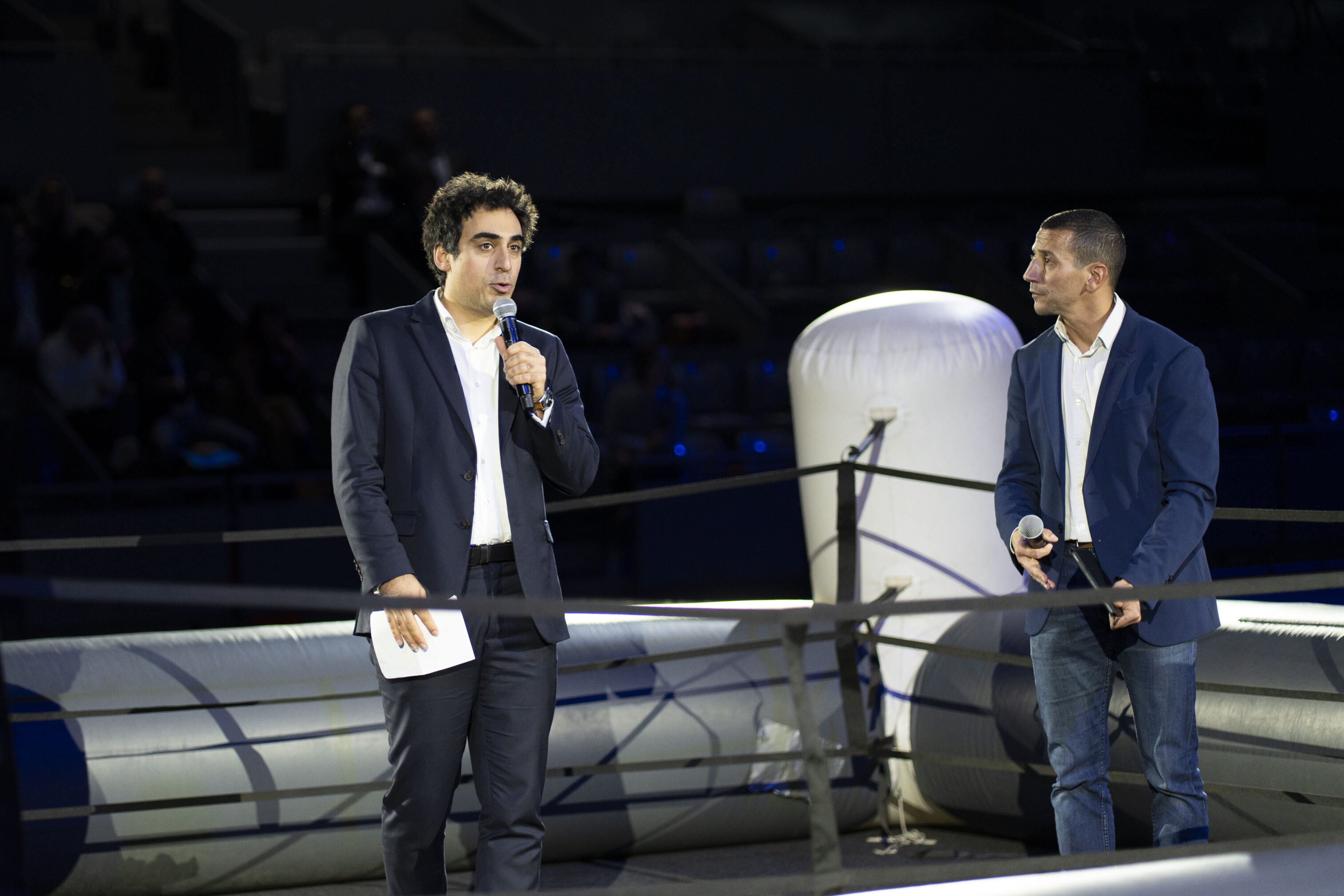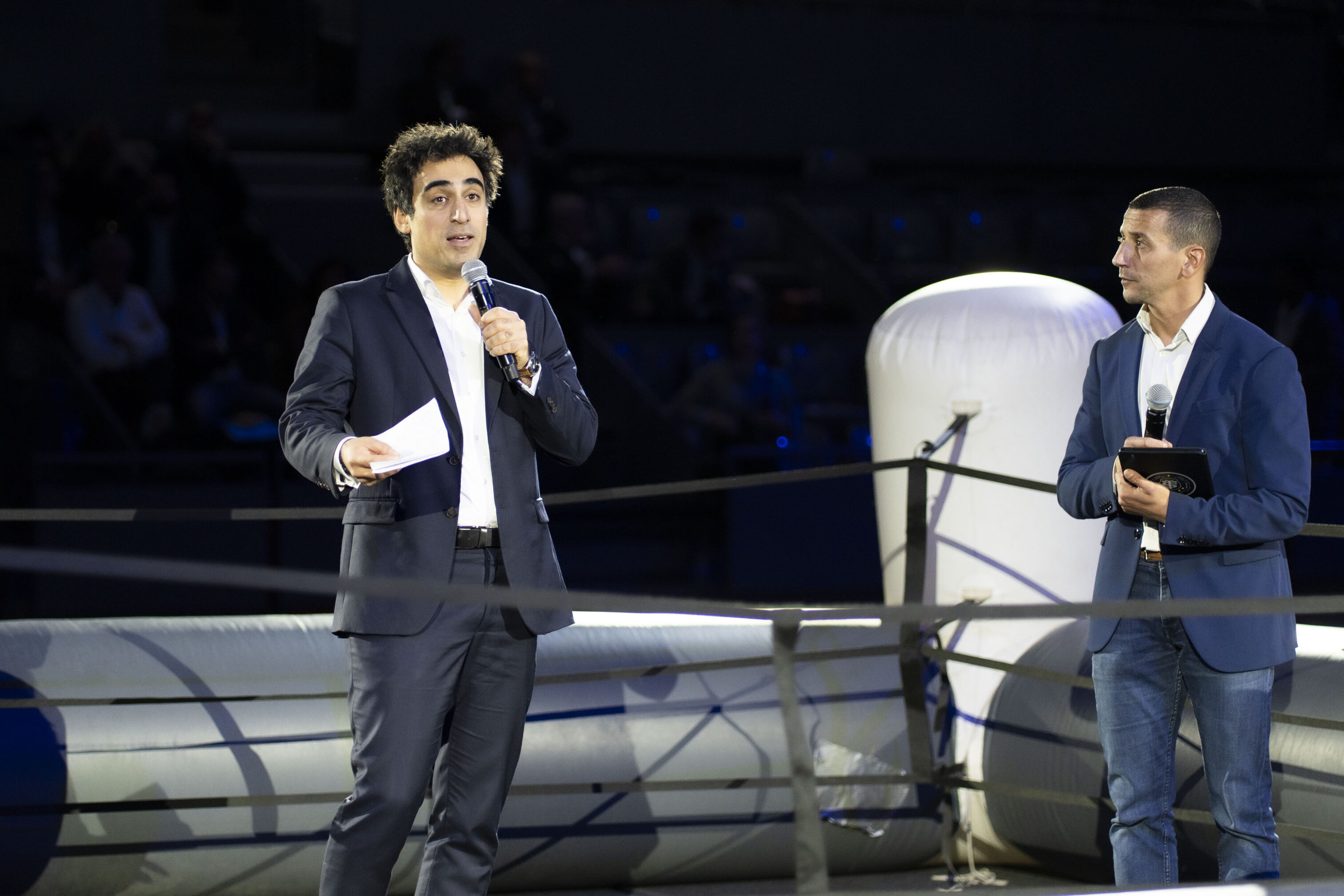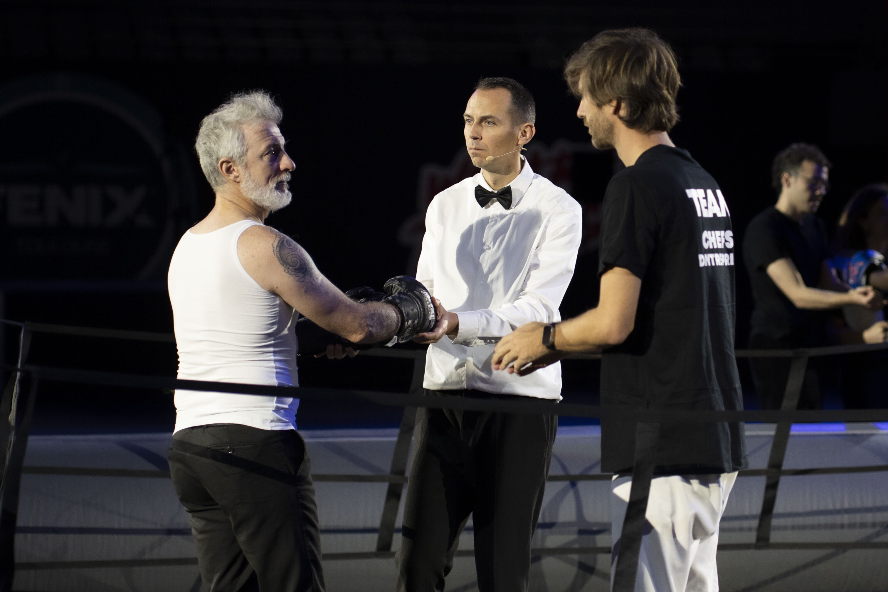 Pour incarner le combat du chef d’entreprise et les difficultés auxquelles il doit constamment faire face (hausse des cotisations sociales, suppression d’un crédit d’impôt essentiel, taxation du patrimoine et des dividendes, durcissement du cautionnement personnel, hausse de la TVA, etc…): nous avons choisi de mettre en place un véritable combat de boxe.