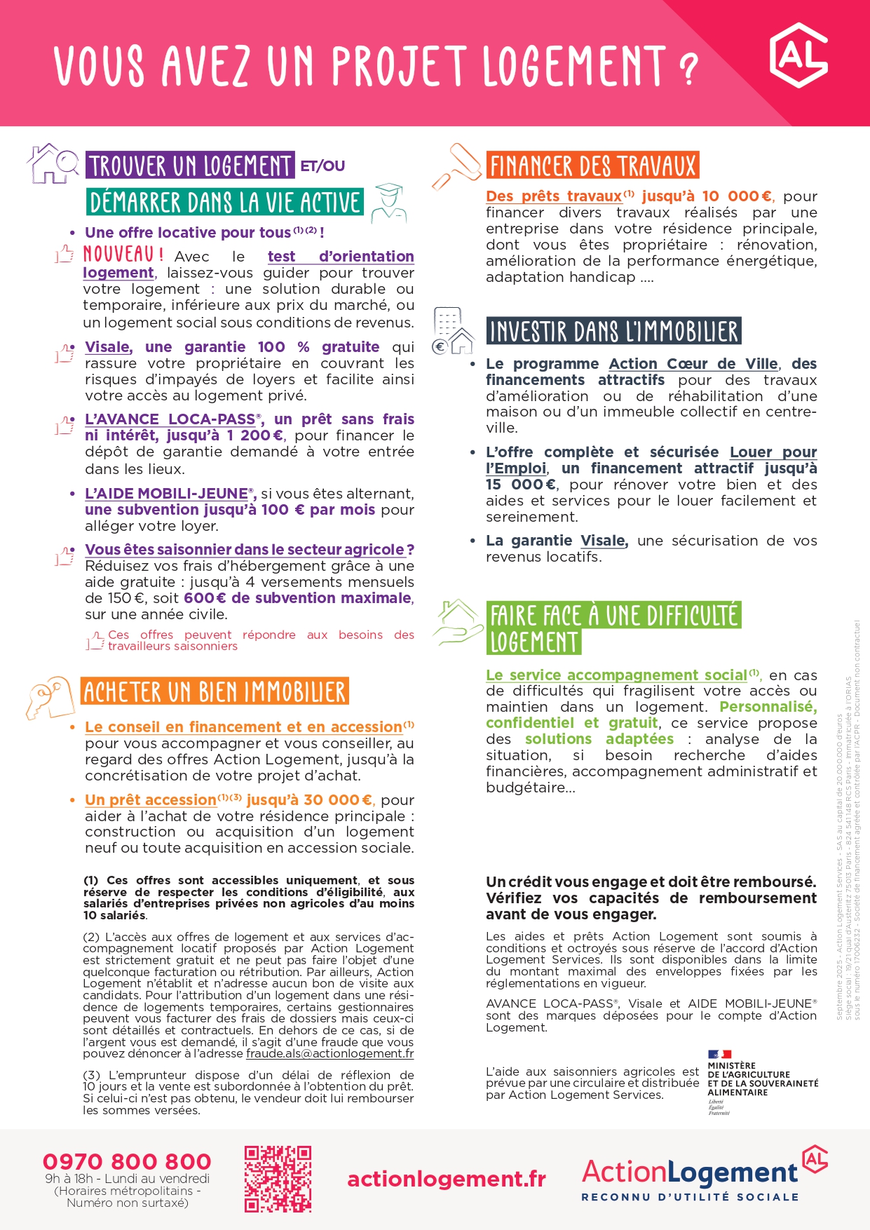 Pour plus d’informations et accéder aux services : actionlogement.fr ou 0970 800 800 (du lundi au vendredi, de 9h à 18h, numéro non surtaxé).