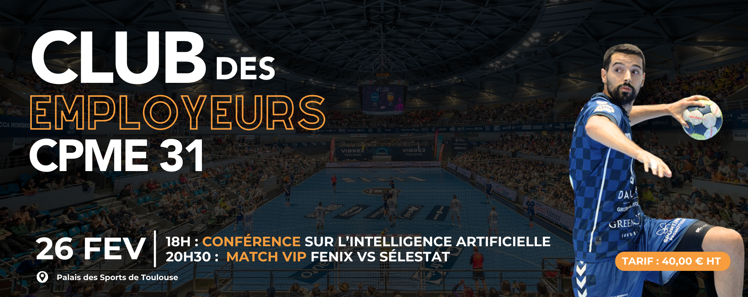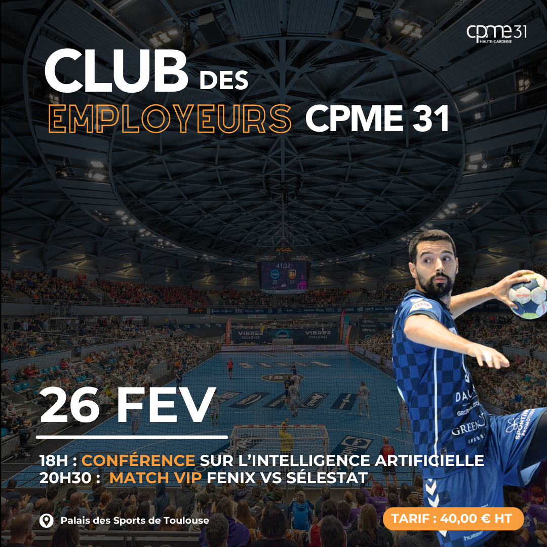 Le Club des Employeurs de la CPME 31 a le plaisir de vous convier à une soirée d’exception mêlant intelligence artificielle et sport de haut niveau. Venez découvrir des cas d’usage réels pour transformer vos méthodes de travail, que vous soyez novice ou expert, et profitez en suivant de l’expérience VIP dans le cadre du match FENIX vs SÉLESTAT.